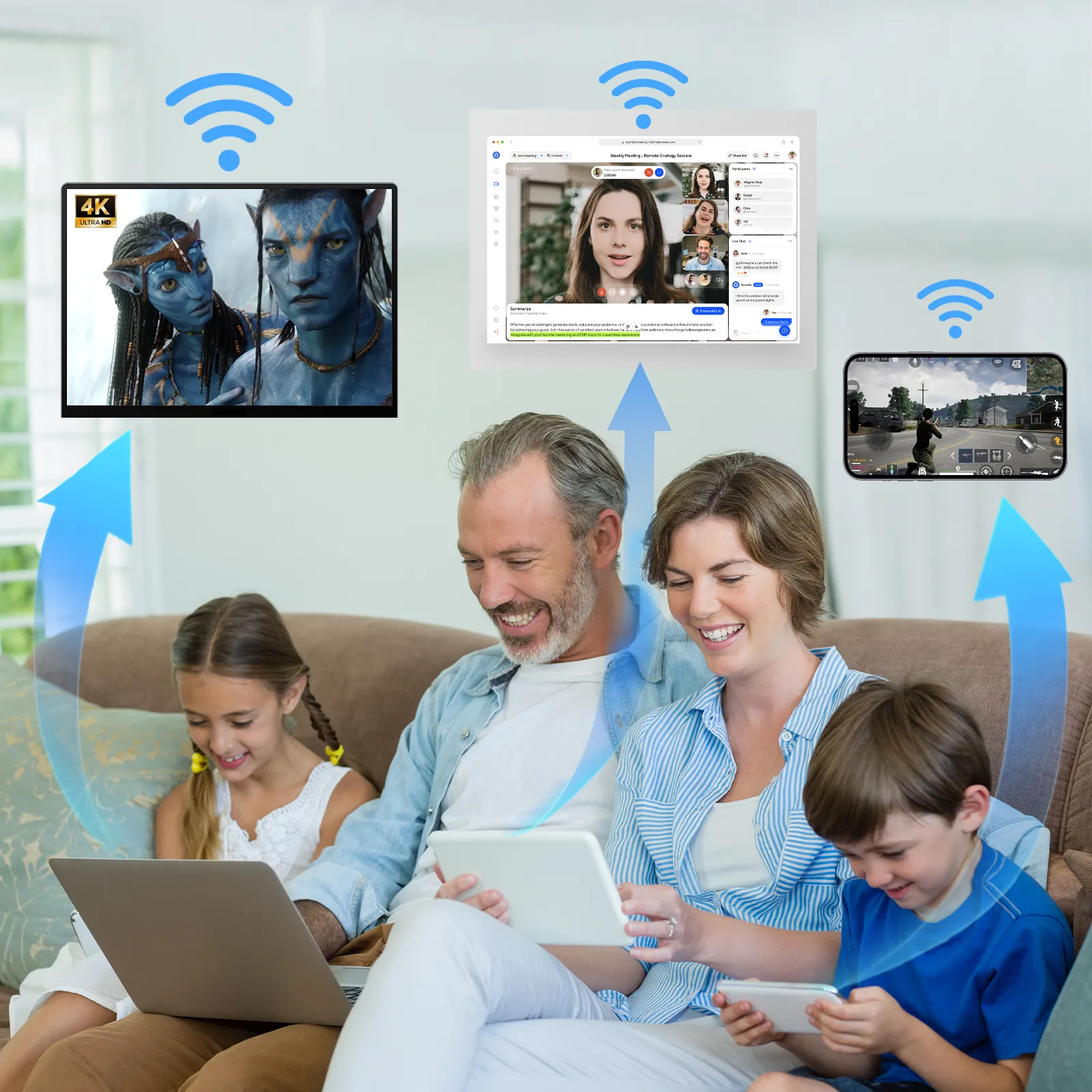 Er du træt af, at familien skændes om båndbredden? Når én ser en 4K-film i stuen, oplever andre ofte forsinkelser (lag) i spil eller videoopkald, hvilket fører til frustration. Praxia-boosteren gør op med alle netværksbekymringer ved at levere problemfrit Wi-Fi til hele familien. Den sikrer, at hver enhed får en stabil højhastighedsforbindelse, så smart-tv, spillekonsol og telefoner kan køre gnidningsløst på samme tid. Sig farvel til buffering og forsinkelser, og skab harmoni i hjemmenetværket.